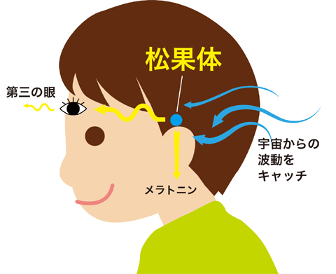 松果体は、グリーンピースほどの小さな腺官で、クリスタル(珪素)と水でできています。非常に小さな「腺」ですが、前述のように、体と心のバランスを担っている、とても大事なところです。